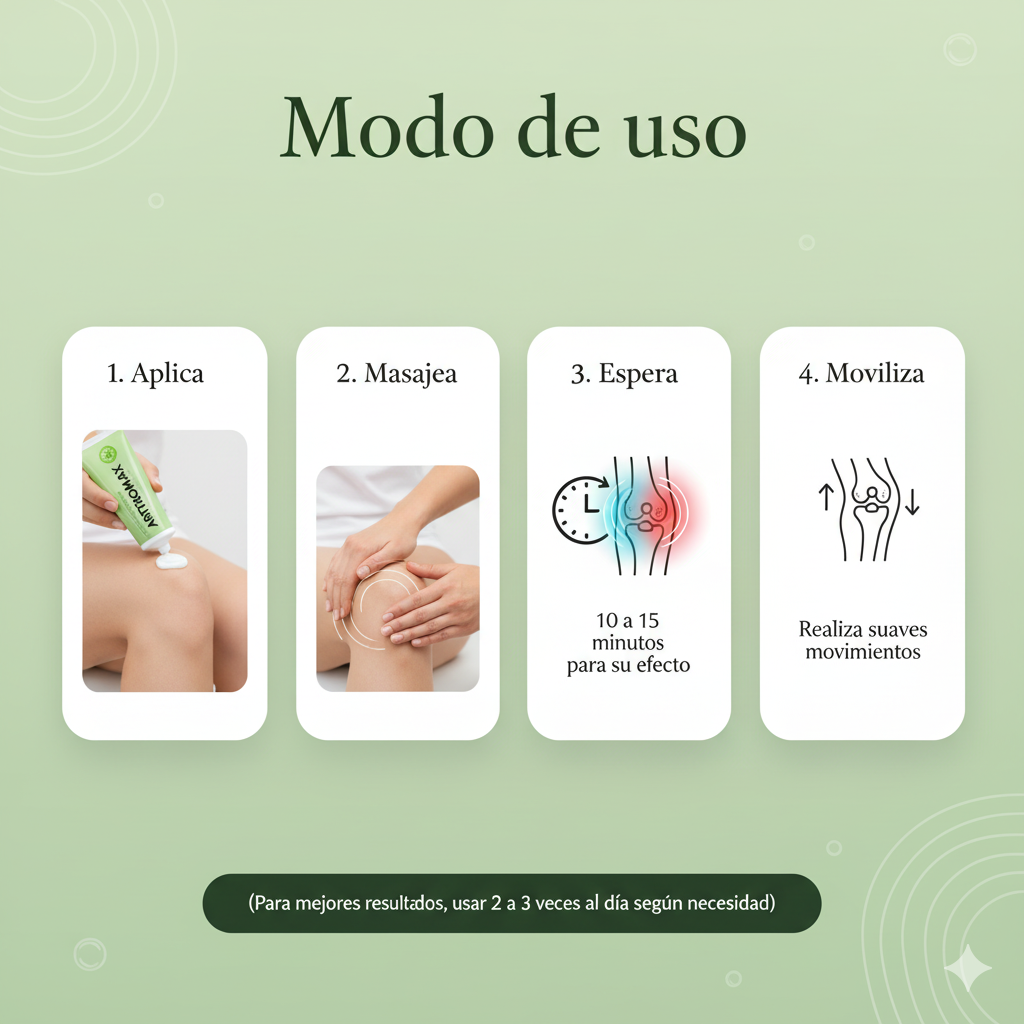 Sí. ARTROMAX tiene una fórmula natural y segura, diseñada para uso diario. Puedes aplicarla de 2 a 3 veces al día sin riesgo de efectos secundarios ni irritaciones, incluso en tratamientos prolongados.