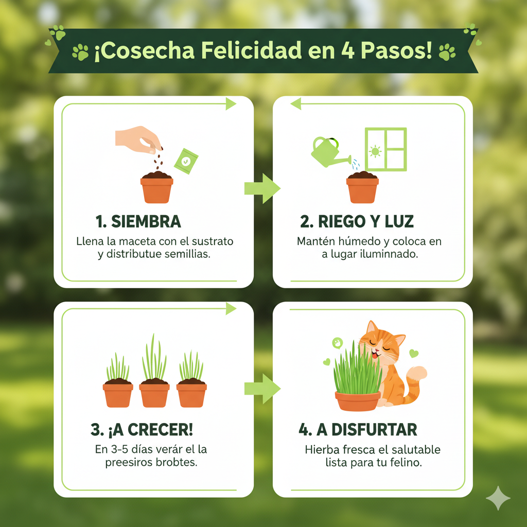 - Semillas Premium: Crecimiento rápido, robusto y 100% seguro para tu gato. ¡Germinación garantizada!